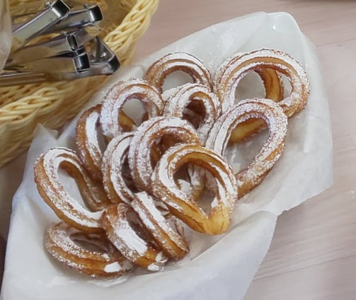 生地から手作りの本場スペインチュロスを、しずく(ティアドロップ)の形に形成します。新鮮・熱々をお召し上がください。